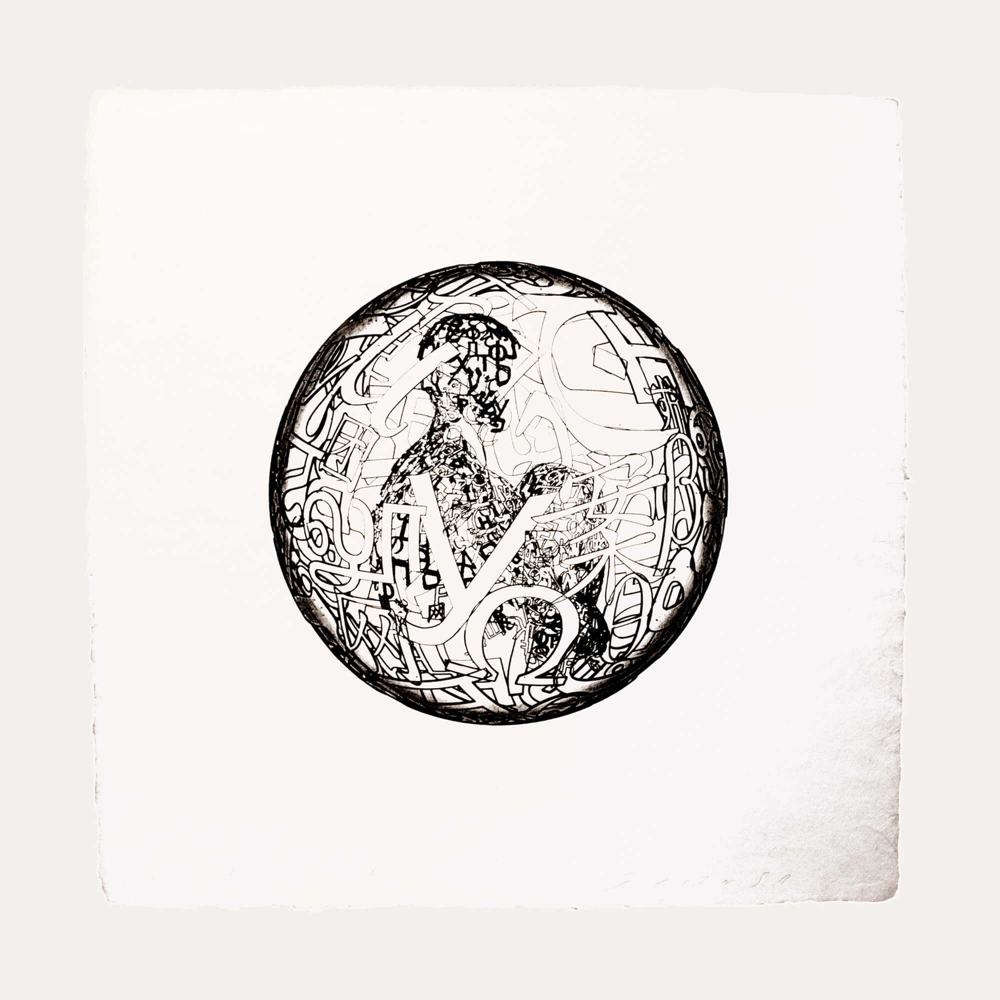 Alchimistes III (2018) is a photogravure on handmade Abacá 300g paper, inspired by Jaume Plensa’s iconic sculpture Alchemist at the Massachusetts Institute of Technology (MIT).