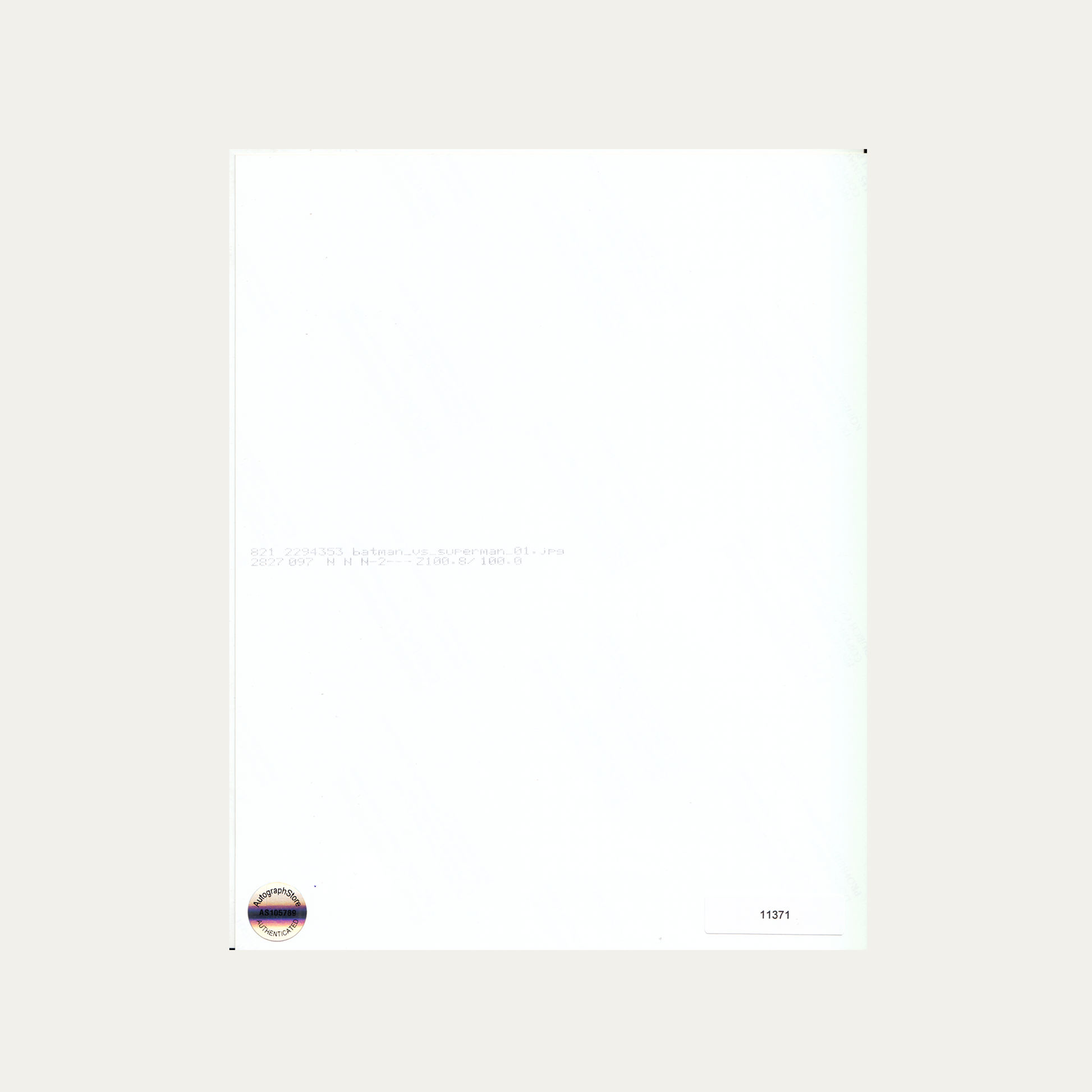 Foto de Gal Gadot y Ben Affleck en Batman vs. Superman: El Amanecer de la Justicia (2016). Firmada por: Mujer Maravilla (Gal Gadot) y Batman (Ben Affleck). Impresión contemporánea a color.