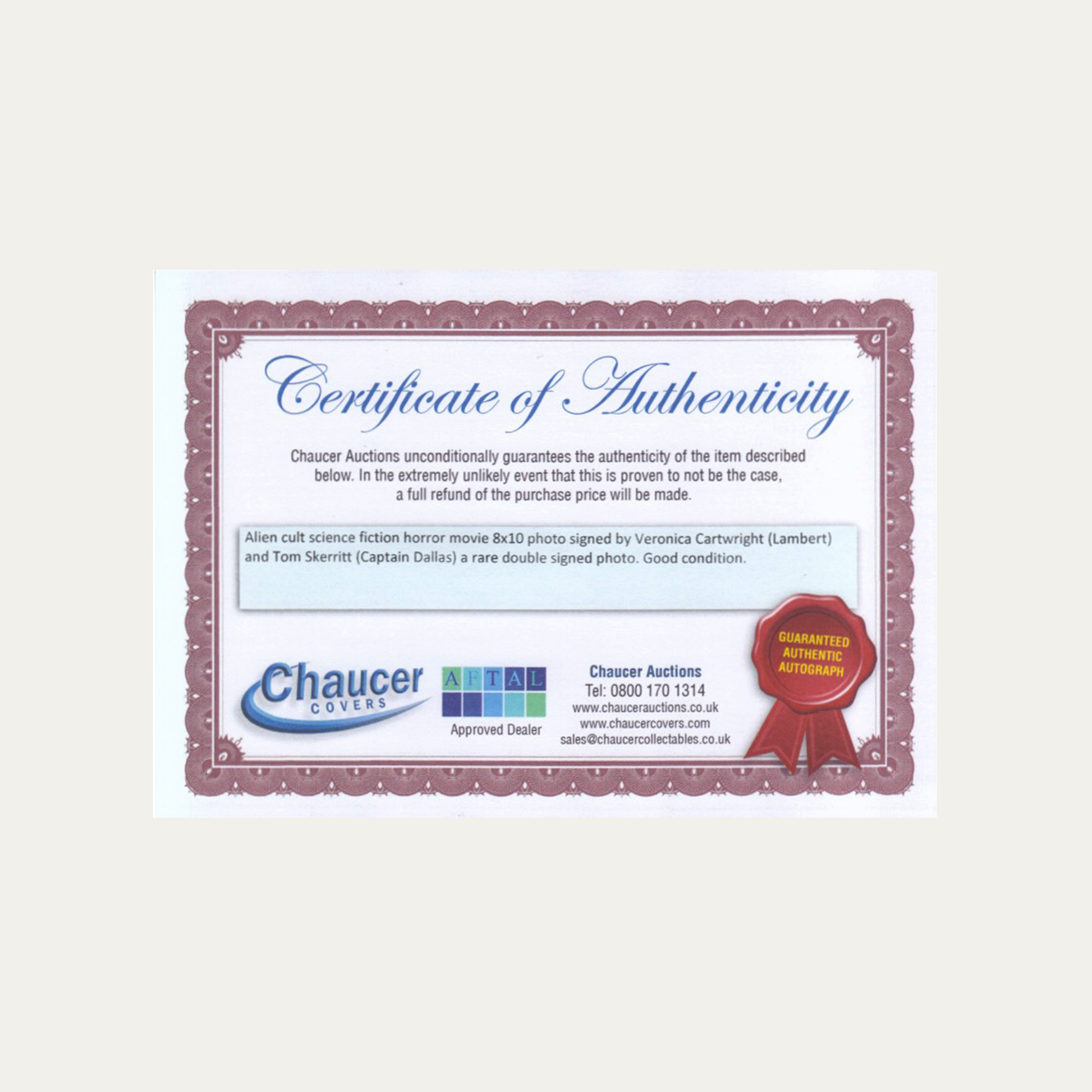 Lote 26: Fotografía firmada de Alien: El octavo pasajero (1979) - Veronica Cartwright, Tom Skerrit