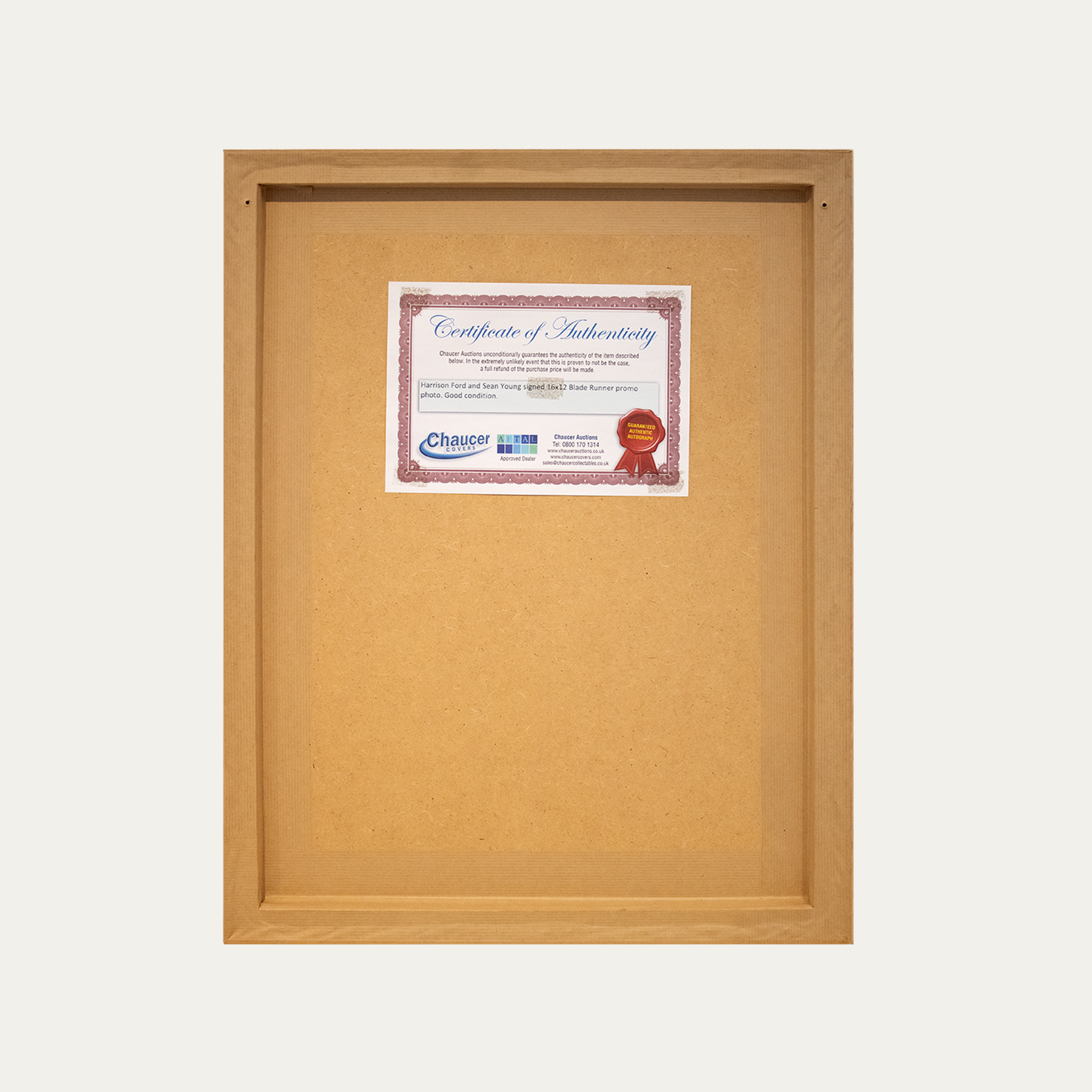 Póster de Harrison Ford y Sean Young en Blade Runner de 1982. Firmado por: Harrison Ford, Sean Young, Daryl Hannah, Rutger Hauer y Ridley Scott. Impresión digital sobre papel.
