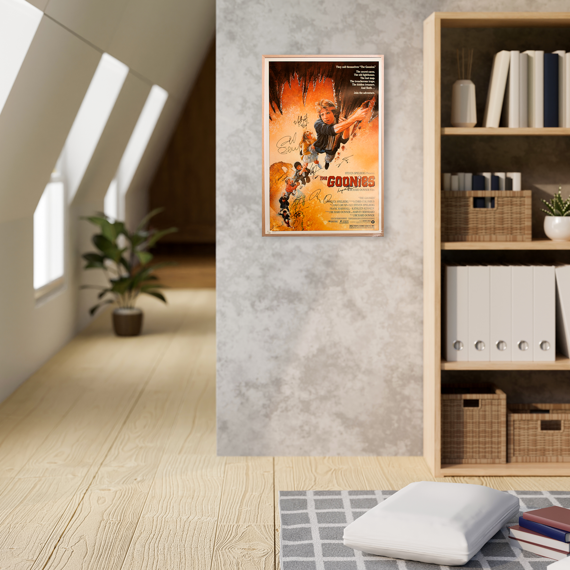 Lote 54: Póster firmado de Los Goonies (1985) - Sean Astin, Josh Brolin, Jeff Cohen, Corey Feldman, Martha Plimpton, Ke Huy Quan, Kerri Green