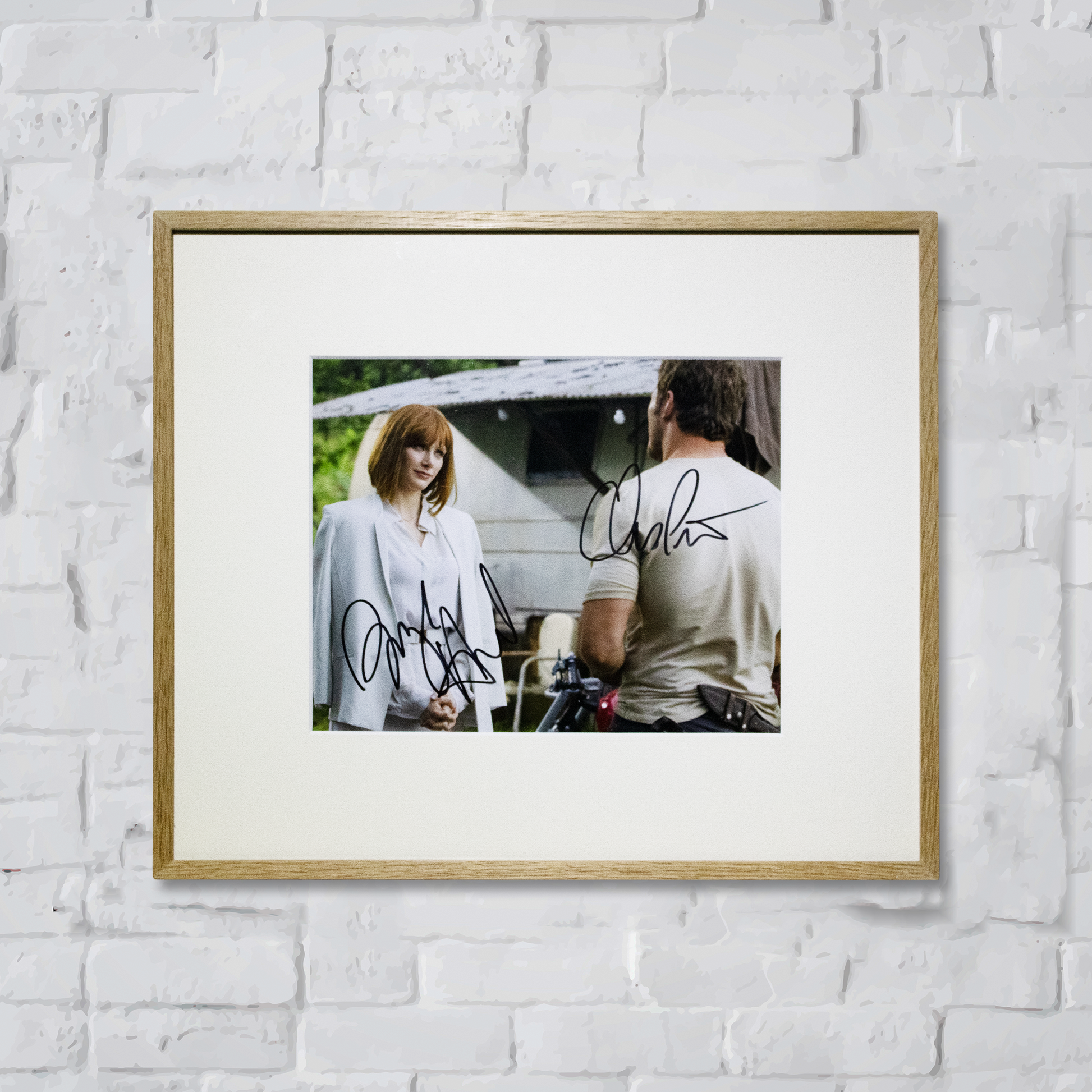 Photo of Bryce Dallas Howard & Chris Prao in Jurassic World of 2015. Signed by: Bryce Dallas Howard & Chris Prao. Contemporary color print run.