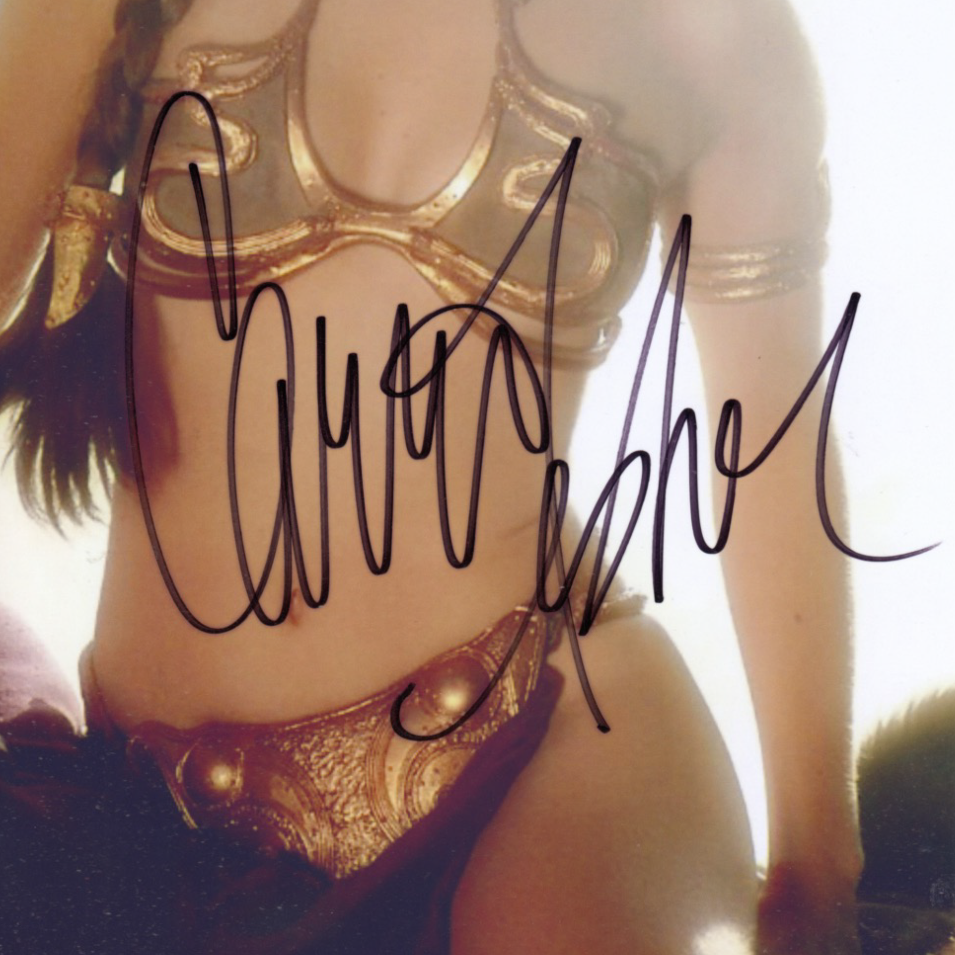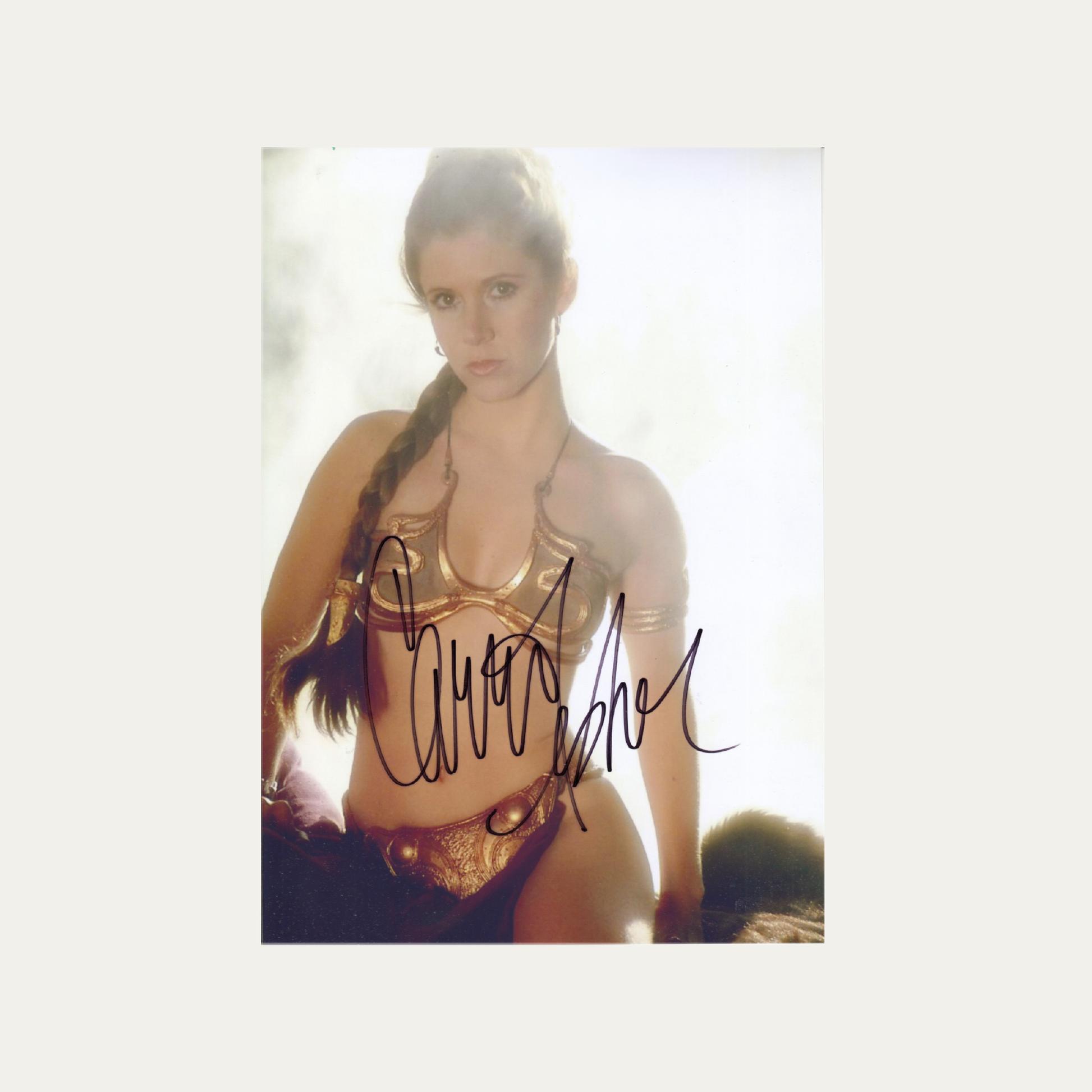 Photo of Carrie Fisher in the Star Wars Trilogy of 1983. Signed by: Carrie Fisher. Chromogenic print on paper.