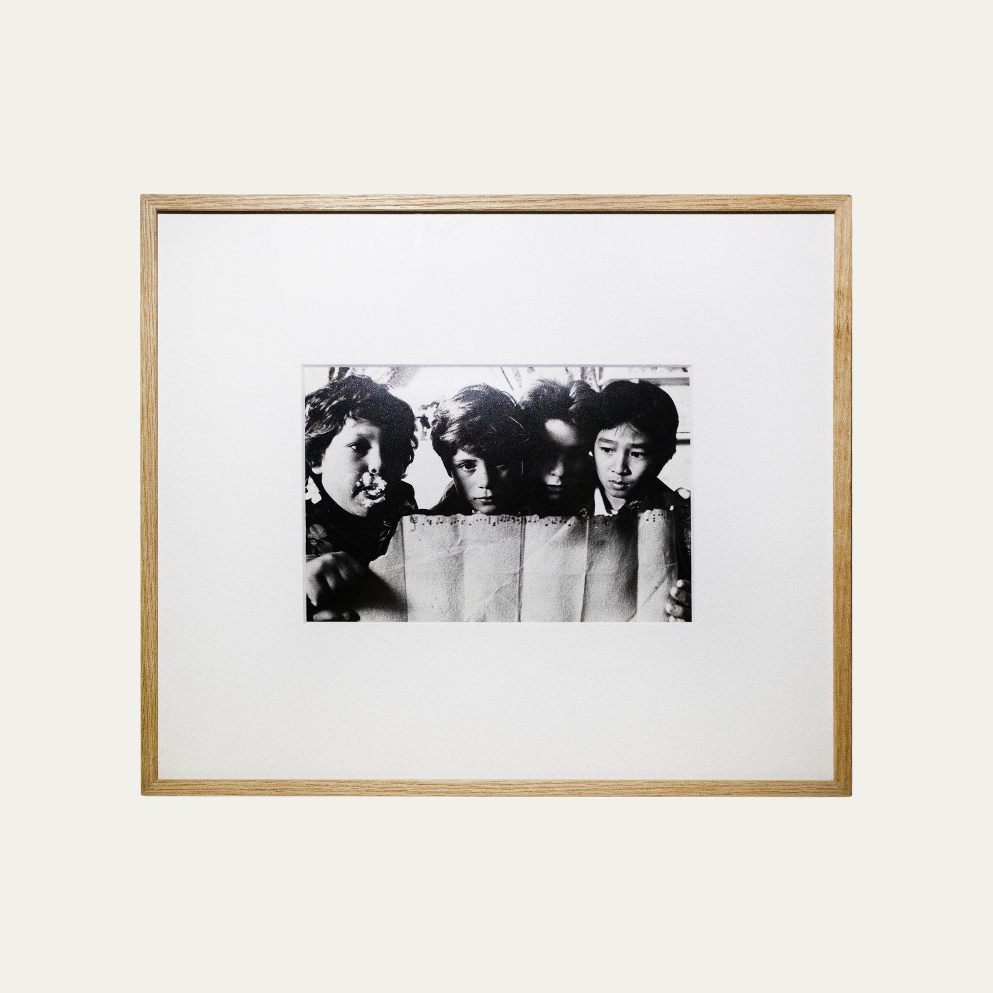 Photo of Sean Astin, Josh Brolin, Jeff Cohen, Corey Feldman, Martha Plimpton, Ke Huy Quan, Kerri Green in The Goonies of 1985. Signed by: no. Period print in gelatin silver.