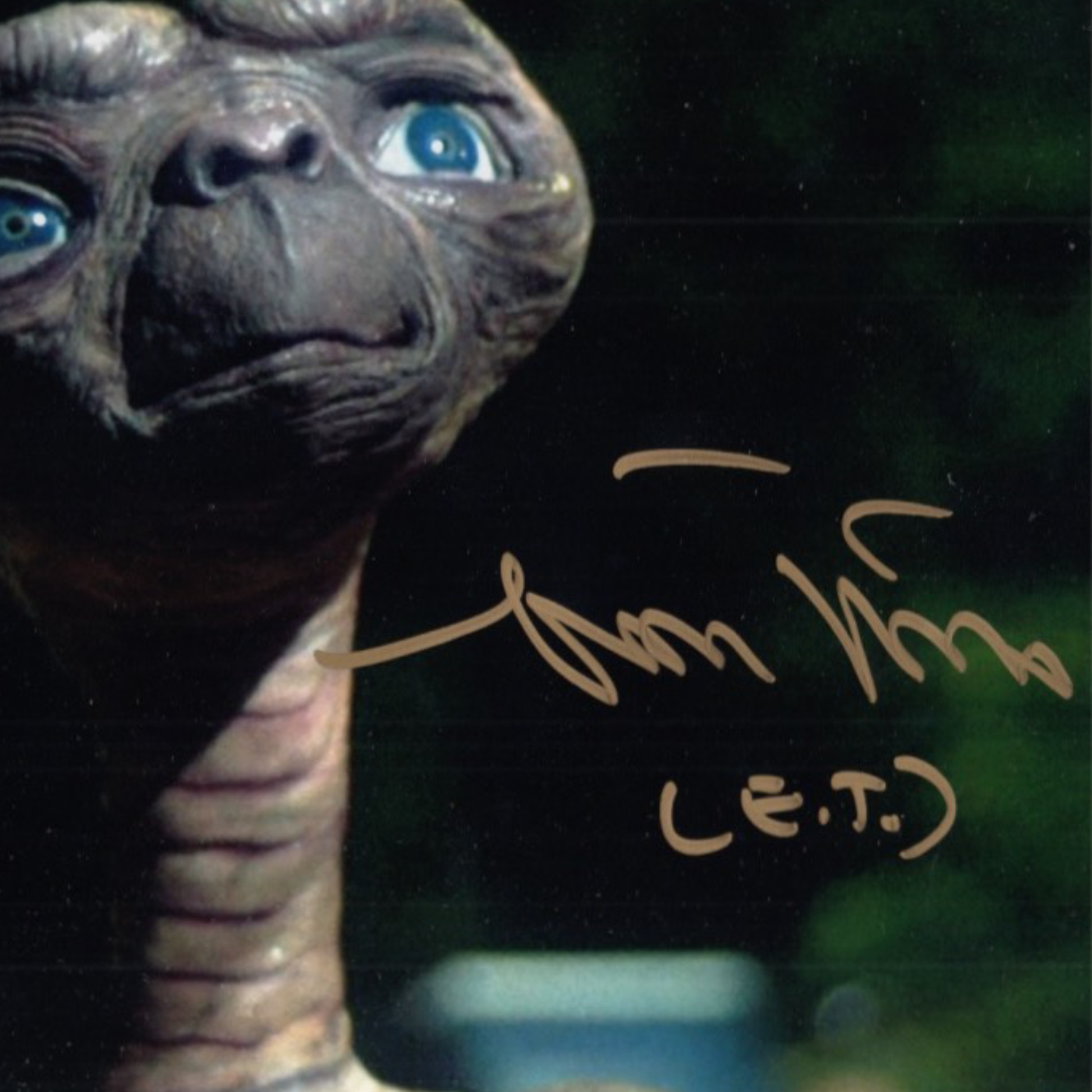Photo of E.T. in E.T. the Extra-Terrestrial of 1982. Signed by: Matthew De Merrit. Digital print on paper.